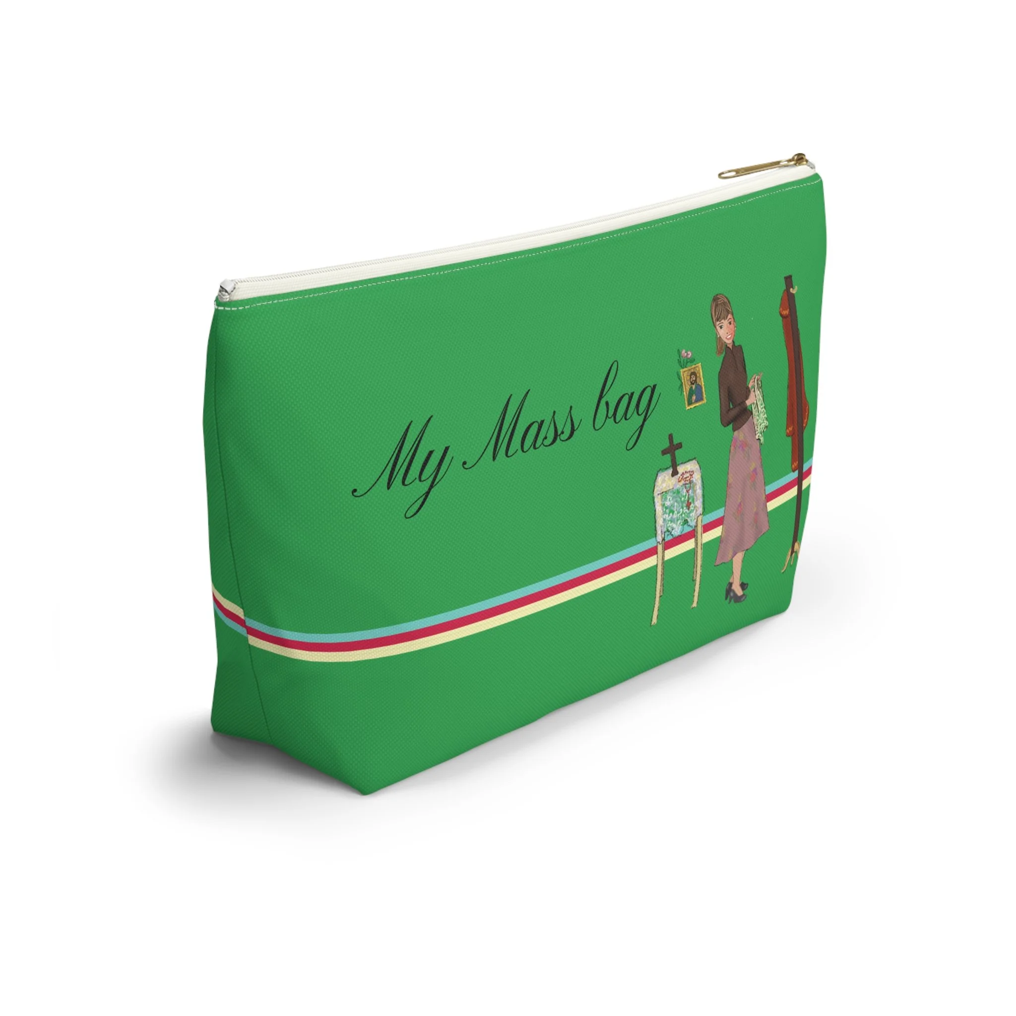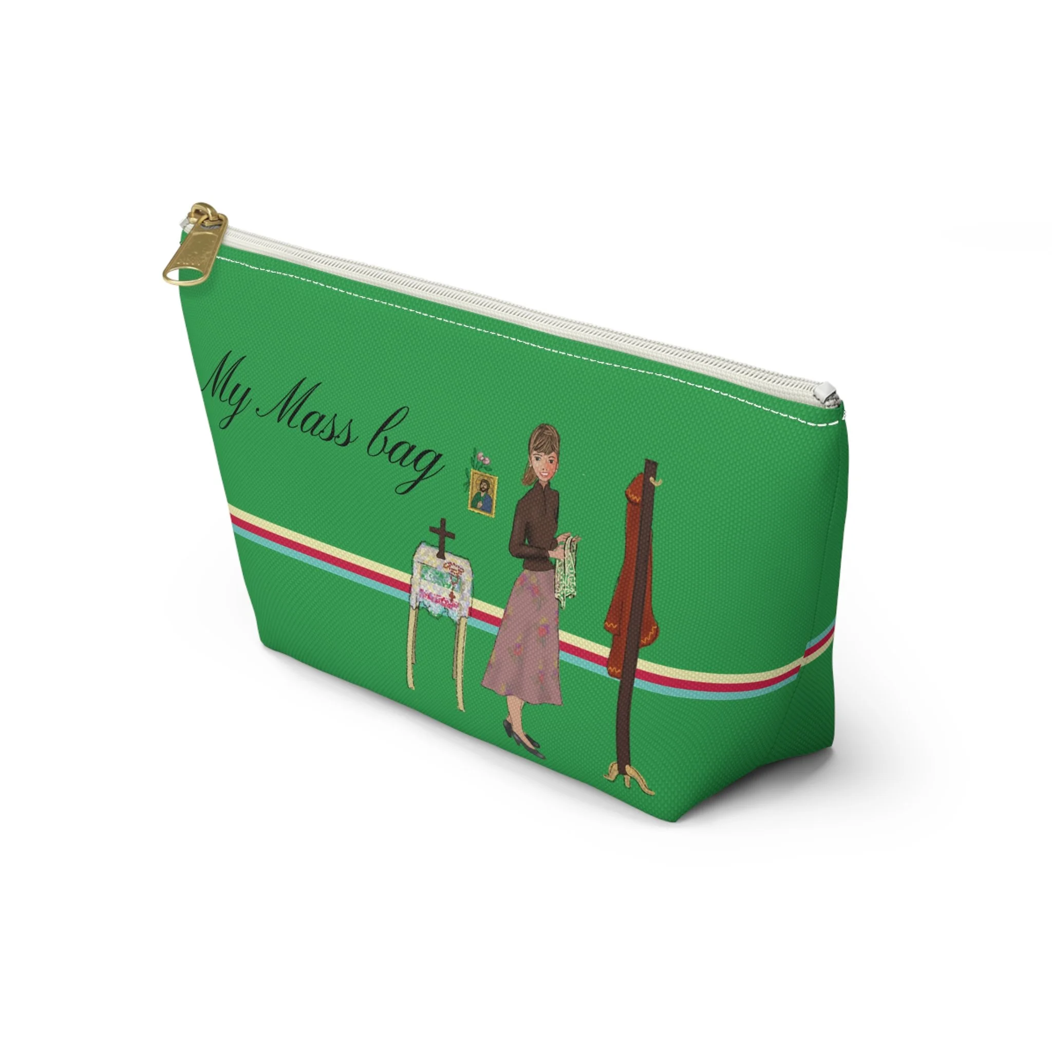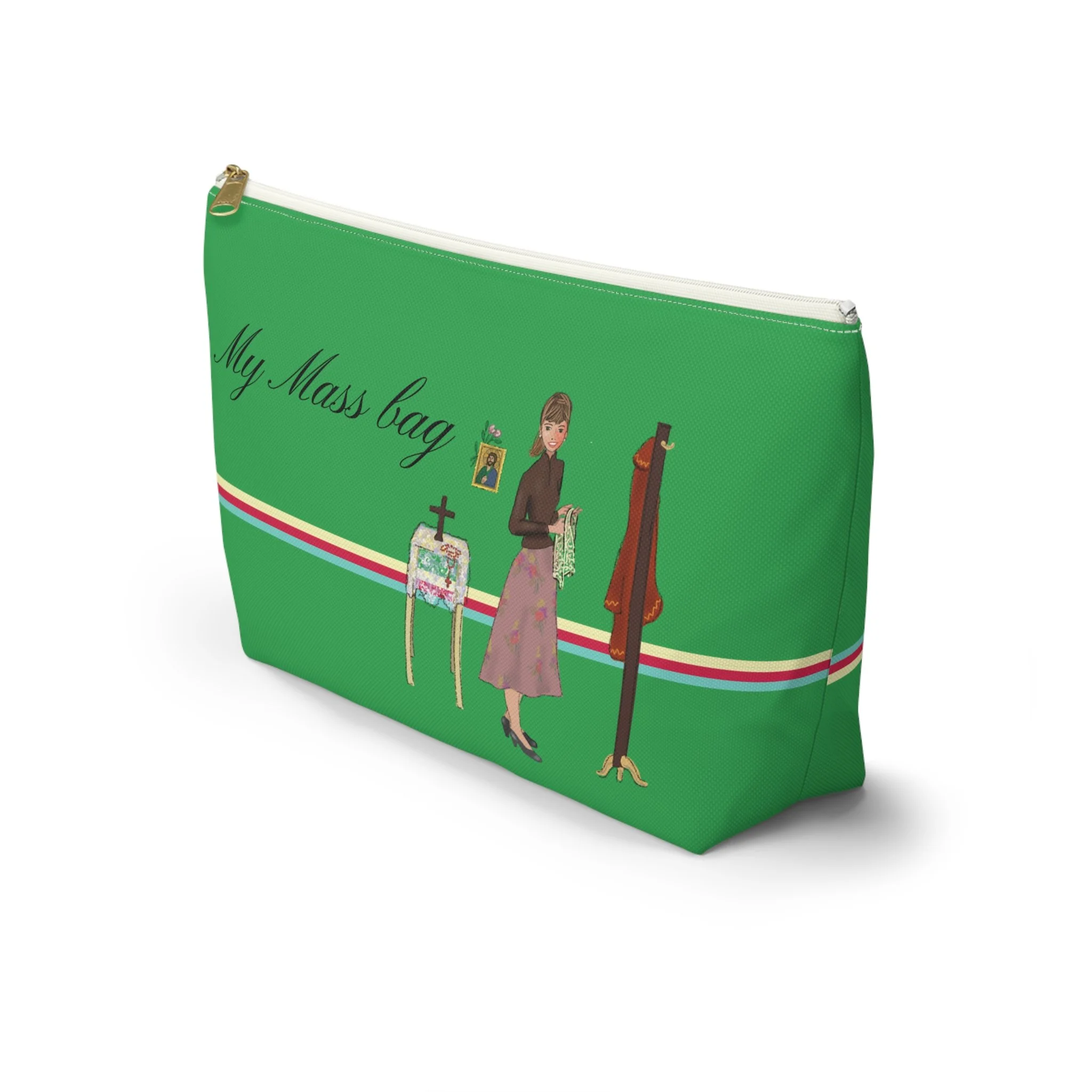 The perfect pouch to store the essentials you bring with you to mass- fashionable to carry like a clutch, and practical enough to stash in your purse or diaper bag! The "Cecilia" version of this bag appears in a friendly kelly green shade. Little Botanical's vintage-style "Mass Bags" feature timelessly stylish fashion figures dressed in their Sunday best, preparing their holy accessories such as chapel veil and rosary beads. CUSTIMIZATION AVAILABLE: visit my other listings or email hello@littlebotanical.store for more information!