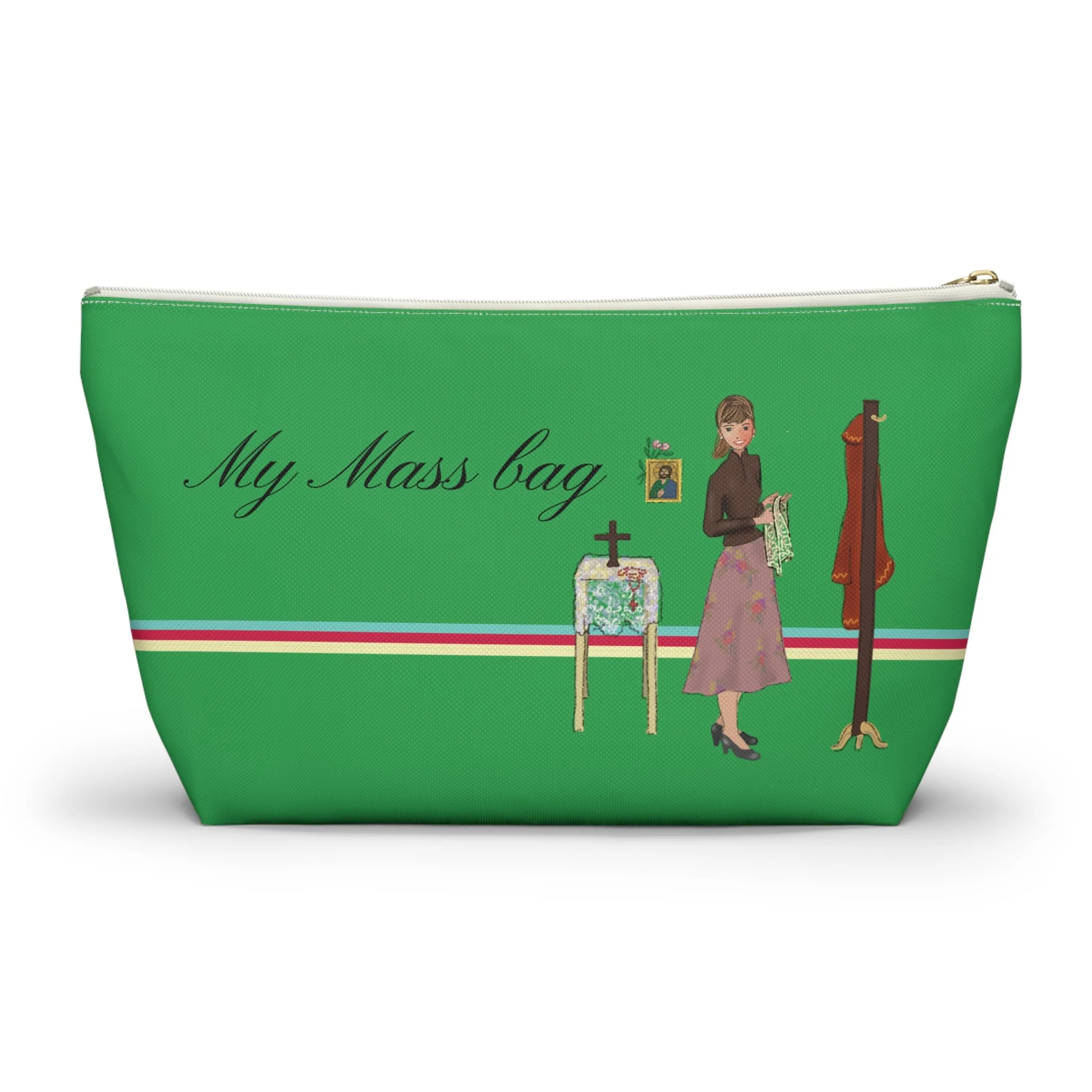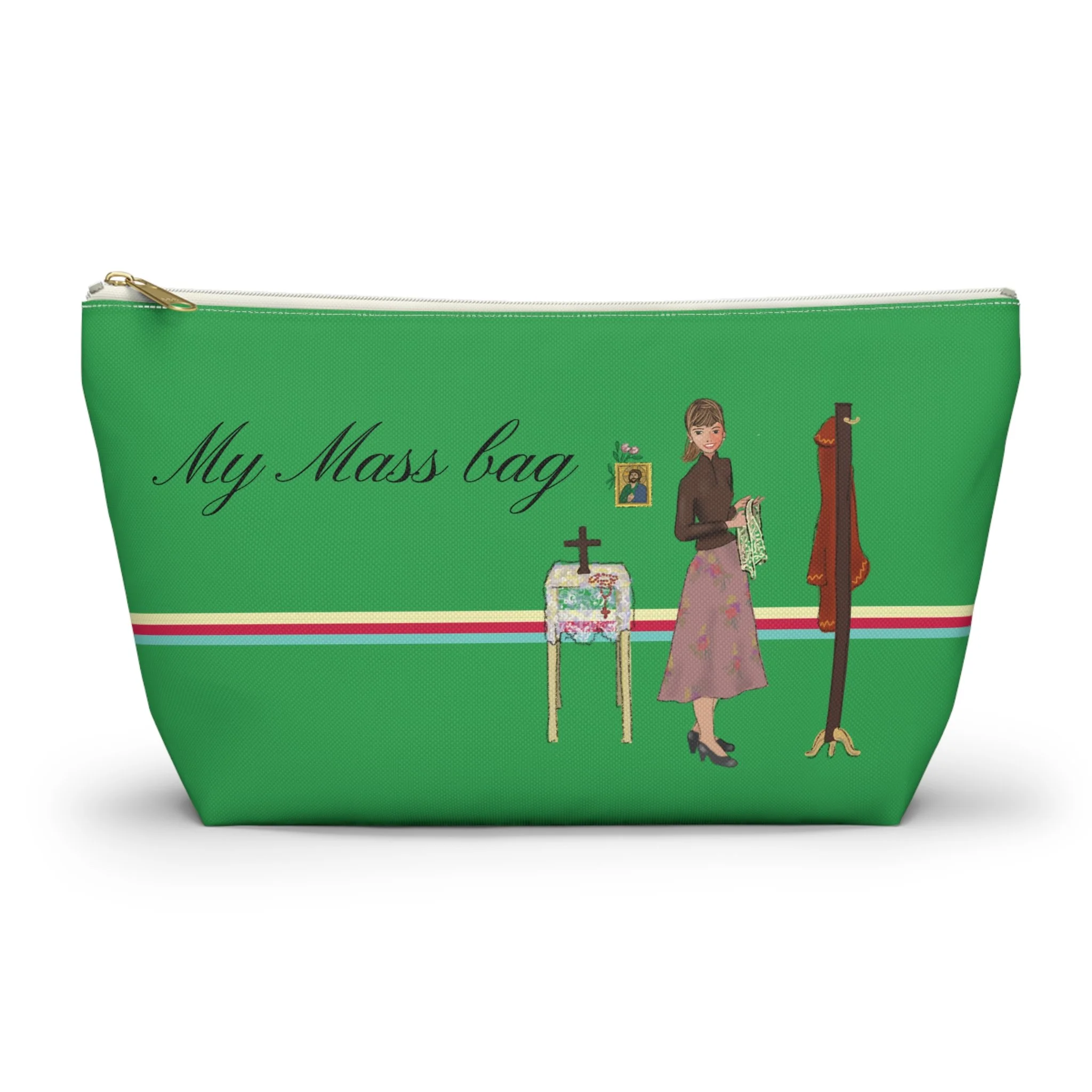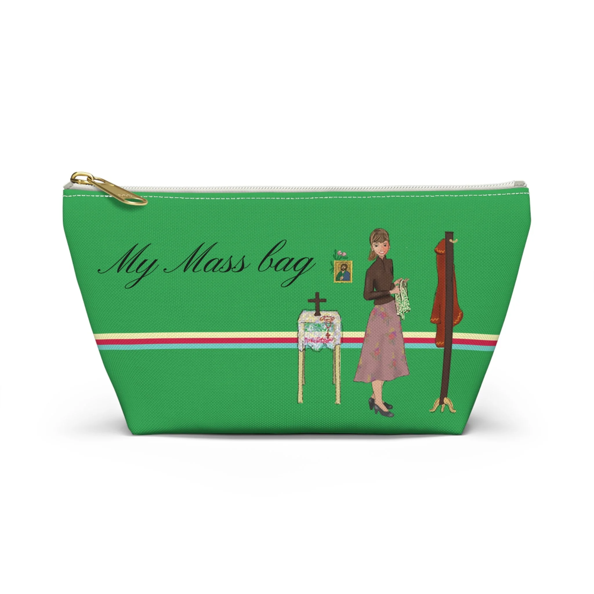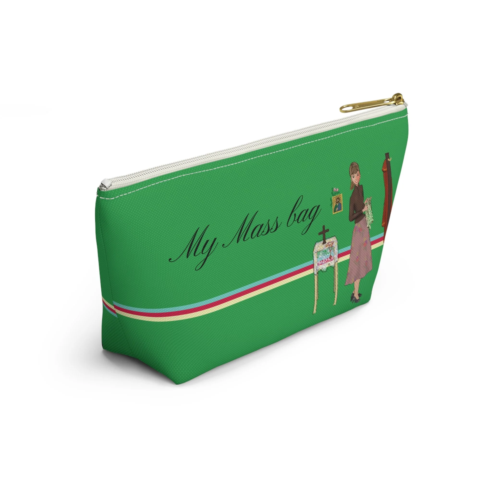 The perfect pouch to store the essentials you bring with you to mass- fashionable to carry like a clutch, and practical enough to stash in your purse or diaper bag! The "Cecilia" version of this bag appears in a friendly kelly green shade. Little Botanical's vintage-style "Mass Bags" feature timelessly stylish fashion figures dressed in their Sunday best, preparing their holy accessories such as chapel veil and rosary beads. CUSTIMIZATION AVAILABLE: visit my other listings or email hello@littlebotanical.store for more information!