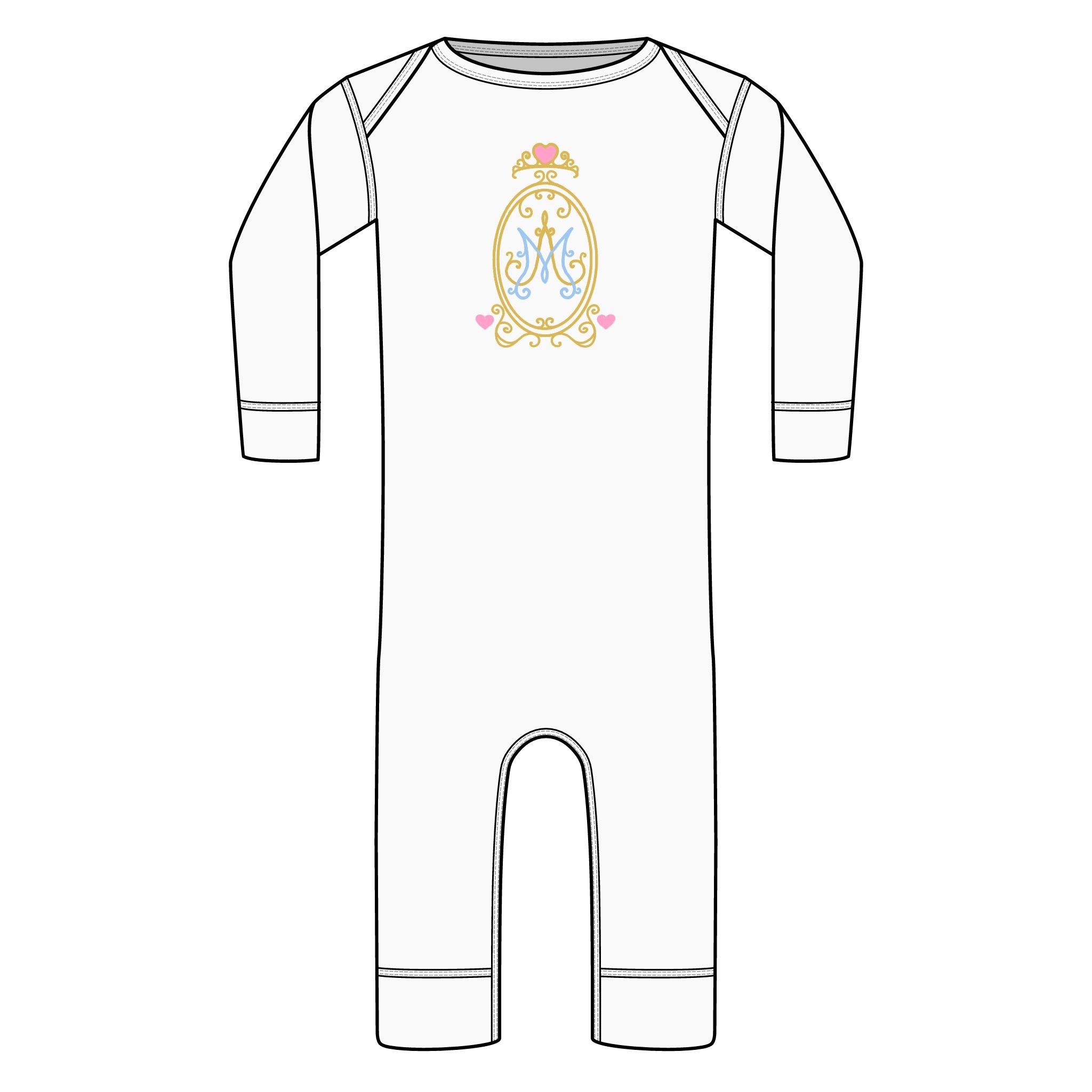 The graceful Auspice M looks stunning and ultra-feminine on this soft, breathable ribbed bodysuit made for little ones: the perfect Baptism, baby shower, or infant gift for your Catholic friends! The lightweight combed cotton stretches gently with each tiny movement while the ribbed binding and side seams keep the shape through washes and tumbles. A three-snap closure sits flat and smooth against delicate skin for quiet diaper changes, and the EasyTear™ label means no scratchy tags to fuss with.