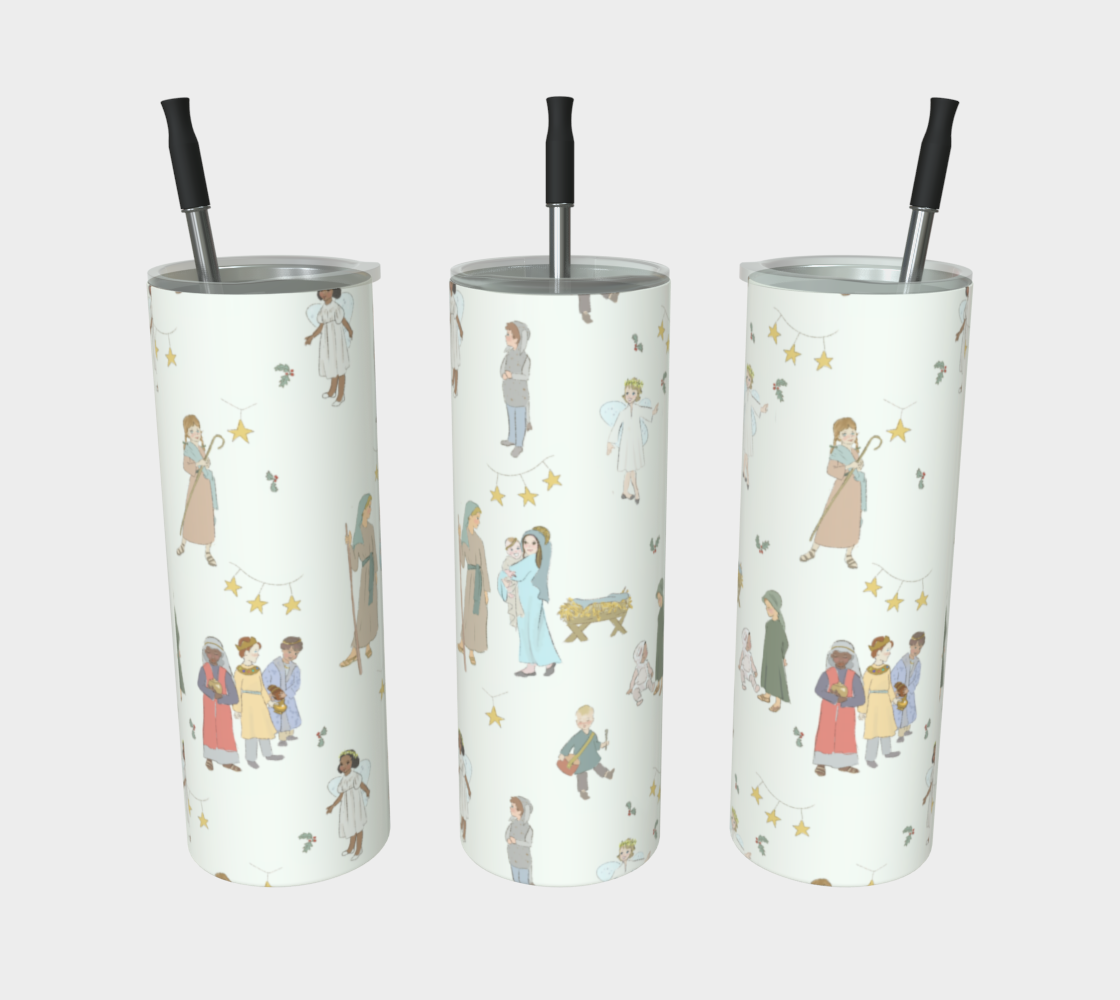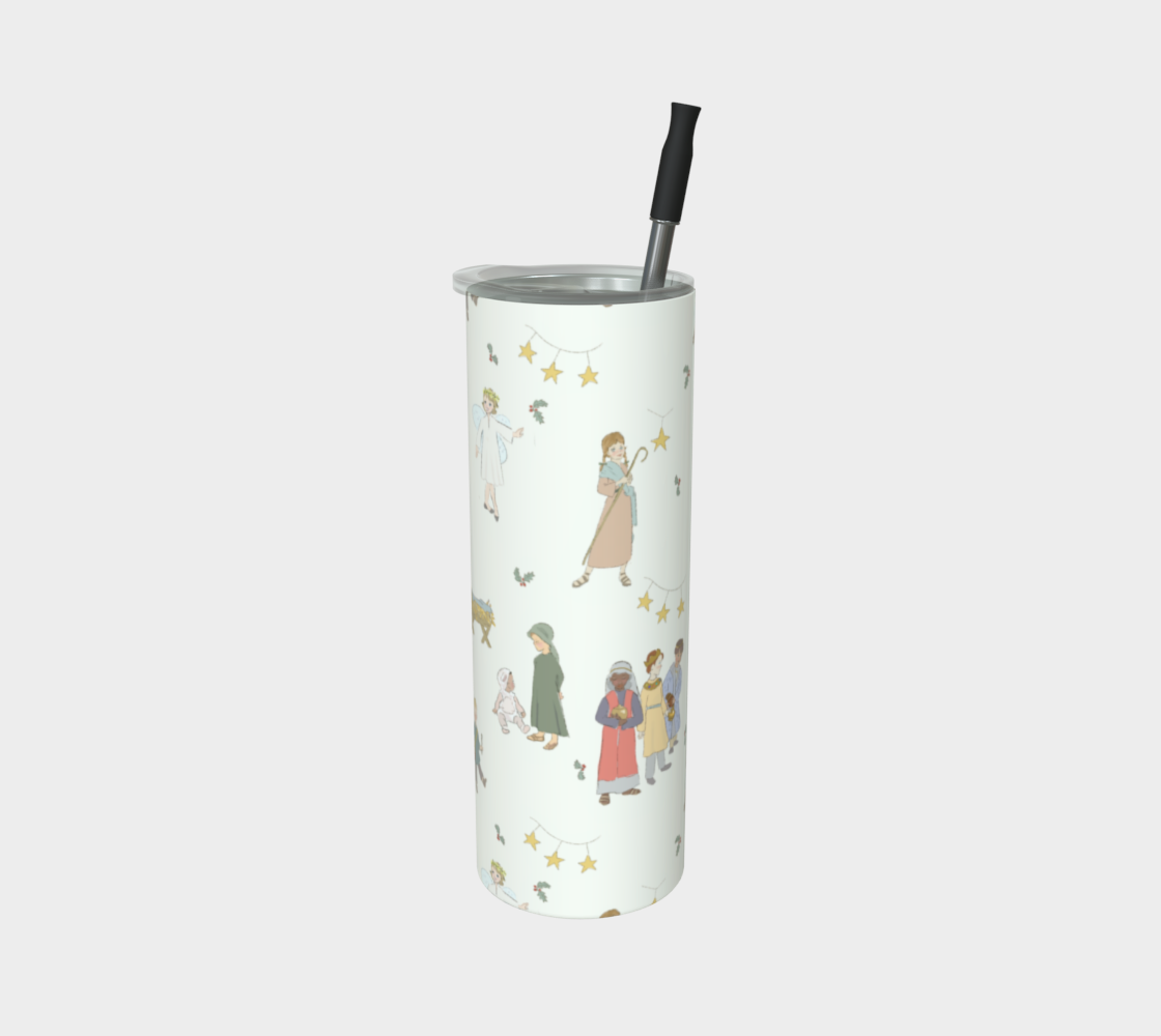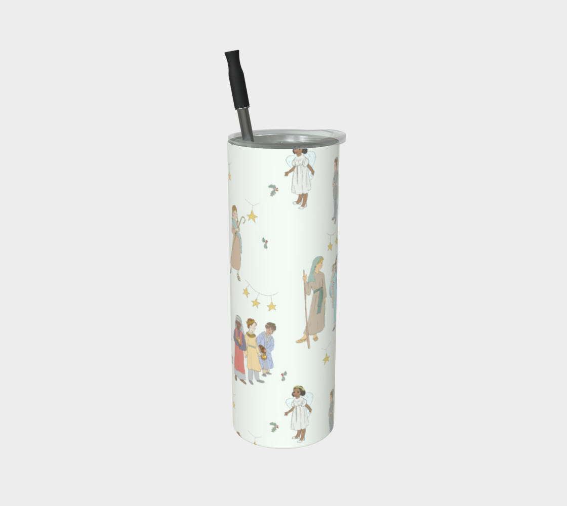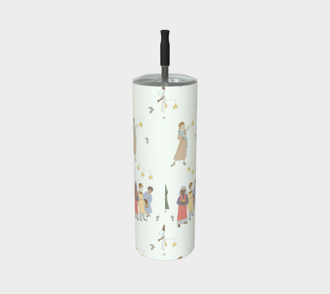 Little Botanical’s Christmas 2025 print is a delightful scene of children dressed for a Nativity pageant, rendered in a vintage illustration style and fashioned in a creamy neutral color palette! Sweet little details like star cut-outs and holly sprigs decorate this joyful pattern and make this reusable bottle, crafted out of stainless steel, as artful as it is festive!
